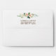 This wedding 5X7 envelope features painted watercolor flowers in blush pink, white, and green foliage with a geometric gold frame on a rustic wood print background. For more advanced customization of this design, please click the Customize Further link to change font, size, and color. Matching items are also available.