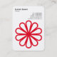 A business card template with geometric flower motif. Company name, business type and address on the front with name, job title, telephony, web and email addresses on the back, with the same layout.