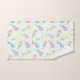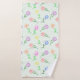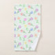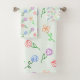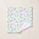 This towel set has a mid-century modern design of circles and circle parts made to look like flowers with stems made by continuous lines, repeating across the design.