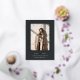 A modern and minimalist graduation announcement design with chic geometric accents. Your vertical photo is framed by a double geometric border in rose gold foil, with your graduate's name, class year, and school beneath. An ethereal calligraphy script accent adds a touch of softness to this simple and minimal design. Add additional details to the color-coordinated back, along with a second photo.