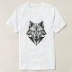 your majestic geometric fox t-shirt design, featuring deep black and gray tones, an simple background, and black eyes for a powerful and simple look.
