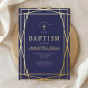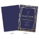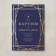 Geometric Frame Navy Blue Boy Baptism Gold Foil Invitation
