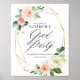 Geometric Gold Frame Pink Peach Watercolor Florals Graduation Party Welcome Sign. Customizable graduation party welcome poster featuring watercolor romantic pink and white flower bouquets with greenery and faux gold foil geometric frames. This floral sign is perfect for spring and garden graduations. Other events and matching items are available.