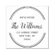 an elegant script design with custom text and geometric circle frame illustration. The Name and address can be edited.