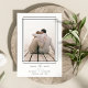 A modern and minimalist save the date design with chic geometric accents. Your vertical photo is framed by a double geometric border in soft black, with your wedding details beneath. An ethereal calligraphy script accent adds a touch of softness to this simple and minimal design. Add additional details to the color-coordinated back, like your wedding website.