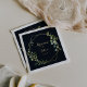 These geometric gold blue green eucalyptus wedding paper napkins are perfect for a modern wedding reception. The design features hand-painted beautiful green leaves in a dark blue background, adorning a gold geometric frame.