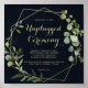 This geometric gold blue green unplugged ceremony sign is perfect for a simple wedding or bridal shower. The design features hand-painted beautiful green leaves in a dark blue background, adorning a gold geometric frame.