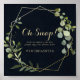 This geometric gold blue green wedding oh snap sign is perfect for a simple wedding or bridal shower. The design features hand-painted beautiful green leaves in a dark blue background, adorning a gold geometric frame.