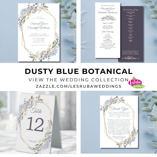 Yes! Our Independent Creators have worked hard to create many products as collections or in coordinating styles and new designs are added daily to many different products. Some popular supplies that match Geometric Gold Dusty Blue Florals Rehearsal Dinner Invitation include napkins and posters that are among our best sellers but we also have many more products you can look at.