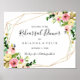 This geometric gold fall rehearsal dinner welcome sign is perfect for a simple wedding rehearsal. The design features pink, blush, yellow, blue and white watercolor fall peonies with botanical green leaves, adorning a geometric frame.