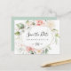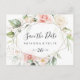 This geometric gold foliage horizontal save the date postcard is perfect for a rustic wedding. The design features hand-painted botanical green and gold foliage with pink, blush, white flowers, adorning an elegant geometric frame.