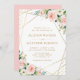 Geometric gold frame pink blush floral wedding invitation