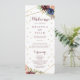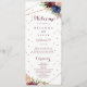 This geometric gold glitter calligraphy wedding program is perfect for a rustic wedding. The design features hand-drawn watercolor purple, navy, blush, burgundy, navy flowers, green and gold leaves adorning an elegant geometric frame.