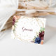 This geometric gold glitter folded wedding gracias card is perfect for a rustic wedding. The design features hand-drawn watercolor purple, navy, blush, burgundy, navy flowers, green and gold leaves adorning an elegant geometric frame.
