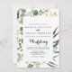 Geometric Gold Green Foliage Front & Back Wedding Invitation