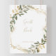 This geometric gold greenery fall guest book sign is perfect for a modern wedding or bridal shower. The design features a beautiful gold geometric frame with elegant green leaves.