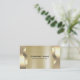 This metallic gold texture business card design features a simple gold metallic texture accented with a metal geometric design.