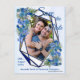 Geometric Gold-Navy frames & Blue Flowers Announcement Postcard