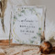 A lovely design with painted white watercolor flowers and a faux gold frame. The text and colors on this wedding sign poster can be edited.