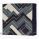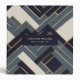Golden lines and geometric shapes in indigo blue, blue-gray, and beige make up this stunning, contemporary illustration.