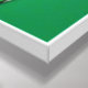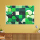 This captivating canvas presents an abstract and geometric composition dominated by a rich palette of greens. Square and circles of various sizes interlace in a dynamic pattern, creating a sense of depth and movement. The colors range from vibrant green to darker, deeper tones, with black and white touches adding contrast and balance. Translucent elements and subtle curved lines overlap with solid forms, providing a sense of lightness and fluidity to the structured composition. This modern artwork is ideal for contemporary spaces, creative offices or any environment looking for a sophisticated and energizing focal piece.