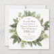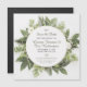 A round wreath made of various leaves and foliage is the main focus on this square Save the Date magnetic card. Perfect for your boho or outdoor wedding or other event. Available with matching products.
