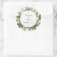 A round wreath made of various leaves and foliage is the main focus on this sticker that can be used on favors or as an easy thank you. Perfect for your boho or outdoor wedding, bridal shower, or other event. Available with matching products.