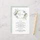 Design features eucalyptus, succulents and greenery elements in shades of dusty sage and blue/gray with a printed gold colored geometric terrarium border wreath frame. The back features a dusty sage green natural matching watercolor background.