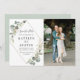 geometric frame watercolor hand painted eucalyptus foliage greenery and a photo of the couple. The color and text details can be personalized.