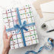 Geometric Grid Pattern with Scattered Hearts Wrapping Paper