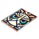 A stylized grumpy cat face in a bold geometric design with teal, cream, and orange tones—perfect for cat lovers with attitude and a love for quirky art.