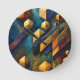 Geometric Harmony: Abstract Cubes in Gold and Teal Round Clock