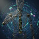 Structure: Dense, repeating geometric arrangement of block shapes.