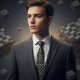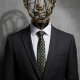 Color Palette: Features dark black/charcoal, sage green, and dull gold/tan. Small, possibly embroidered, green accents are visible within the black shapes.