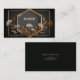 Define your brand with sophisticated midnight luxury and high-impact geometry using this captivating business card. The design centers on a bold, deep black background that provides maximum contrast for the opulent central frame. A striking triple-layered gold hexagon frame defines the space for your information, surrounded by crisp, clean lines that emphasize structure and modernity. The frame is beautifully accented by stylized botanical elements that anchor the bottom: delicate white floral clusters and finely drawn copper-gold leaves and sprigs in a warm autumnal palette. The entire aesthetic is a perfect blend of modern minimalist architecture and rich, detailed botanical luxury, creating an instantly memorable and highly classy brand statement. This business card is ideally suited for a high-end jewelry artisan specializing in geometric or autumnal-themed metallic pieces, a luxury boutique owner promoting an exclusive, dark romantic collection, or a modern wedding stationer specializing in gold and black invitations. It would also perfectly suit a corporate executive who requires a distinctive, prestigious contact card, or a florist emphasizing dramatic contrast and unique presentation. The card's captivating combination of midnight dark tones and intricate metallic gold detailing ensures it is versatile for any classy announcement, a premium product packaging enclosure, or an elegant membership loyalty card.