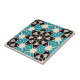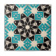 A captivating and contemporary decorative tile that showcases a vibrant fusion of colors and patterns. This exquisite ceramic tile design embraces the allure of geometric shapes, entwining teal, black, and white hues in a mesmerizing kaleidoscopic mosaic arrangement. Elevate your space with this modern masterpiece, adding a touch of dynamic elegance to any interior setting.
