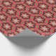 Modern wrapping paper design featuring white geometric flowers and shapes on a light red background.