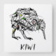If you would like any help personalizing this design, please use the ask this designer button, which is just below this text. And black and white illustration of a kiwi bird. This Kiwi is drawn with geometric shapes and patterns on it's wings.