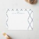 A fun, spring themed lattice pattern personalized stationery set. Inspired by wicker lattice patterns found in outdoor furniture, this pattern features a navy blue lattice with purple accents.