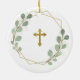 Geometric Leaf Greenery Will you be Godmother Ceramic Ornament