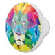 Rainbow geometric lions head design on yellow. Bright color make a fantastic majestic lion