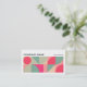 A business card template with an attractive geometric composition made up of 2 x 5 equal square areas in an attractive palette of colors. Company details on the front with name and contact details on the back in white on a contrasting dark gray background. Can be adapted to a variety of businesses and other uses. Can also be changed for use more as a profile card by removing or swapping the company and personal name details.