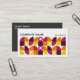 A business card template with an attractive geometric composition in an attractive palette of colors. Company details on the front with name and contact details on the back in white on a contrasting dark gray background. Can be adapted to a variety of businesses and other uses. Can also be changed for use more as a profile card by removing or swapping the company and personal name details.
