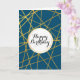 An abstract pattern featuring faux gold stripes over which a round white circle edged with faux gold rests. Text templates for your personalized greeting appear in the middle in black and the blue background may be changed to any color of your choice. Ideal for birthday greetings to men.