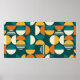 Geometric mid-century modern seamless pattern - 60's and 70's minimalist textile design with circles. Retro style repetitive background, funky wallpaper or poster in orange and turquoise