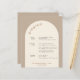 Geometric Minimal Sand Beige Arch Wedding Itinerary featuring your wedding timeline and additional information on the back. Use the design tool to drag and drop all text boxes and delete what you don't need.