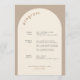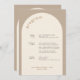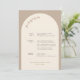 Geometric Minimal Sand Arch Wedding Timeline Program in neutral colors. This Wedding Timeline features your wedding program and additional information on the back. Use the design tool to drag and drop all text boxes and delete what you don't need.