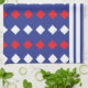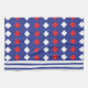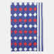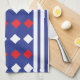 Geometric Modern White Red Diamond Stripe kitchen towel. White Red Diamond Stripe Pattern on Blue Background.