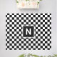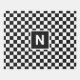 Bold geometric pattern of black and white squares form a checkered pattern with a bold white monogram on a black square in the center. Add your initial in the sidebar.