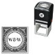 Efficiently personalize your items with this stylish custom self-inking rubber stamp, featuring a captivating layered geometric monogram design. The bold, architectural lines and concentric patterns elegantly frame your chosen initials, creating a distinct and modern impression with every press. Ideal for quickly adding a unique signature to cards, books, or small packages. This durable, pre-inked stamp provides thousands of crisp, consistent marks, saving you time while adding a sophisticated, personalized flourish. A perfect, practical tool for busy individuals, small businesses, or a thoughtful gift for new couples and personal branding.
